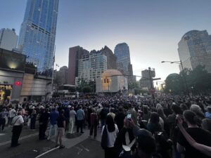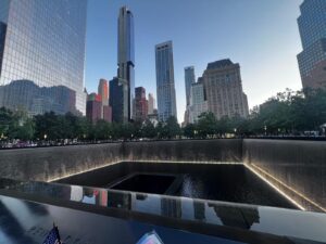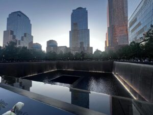 V New Yorku se lidé i po 24 letech znovu scházejí k tiché pietě u dvojice reflecting pools v půdorysech bývalých věží World Trade Center, které tvoří srdce tamního památníku.